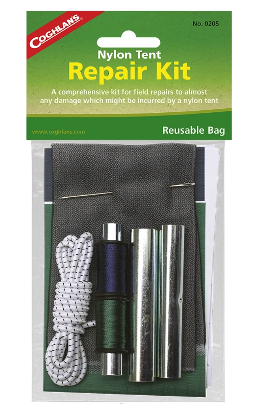 Everything needed for common repairs to nylon tents.