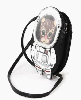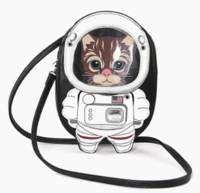Black Astronaut Cat Shoulder Crossbody Bag.