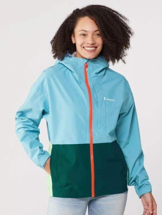A unique and functional take on the traditional outdoor rain jacket, the women’s Cotopaxi Cielo jacket is made with recycled materials and helps keep you and your gear dry in light rain.