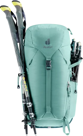 The reduced contact surface and large ventilation channels of the deuter Airstripes back system combined with ergonomic shoulder straps and hip fins ensure maximum airflow and even weight distribution – for a snug, secure fit over any terrain. A flat-format lid allows space for the head to move, even with a helmet on. Loops on the shoulder straps keep via ferrata set carabiners close at hand. And thanks to a large front zipper opening and side pockets, equipment is always easy to access.