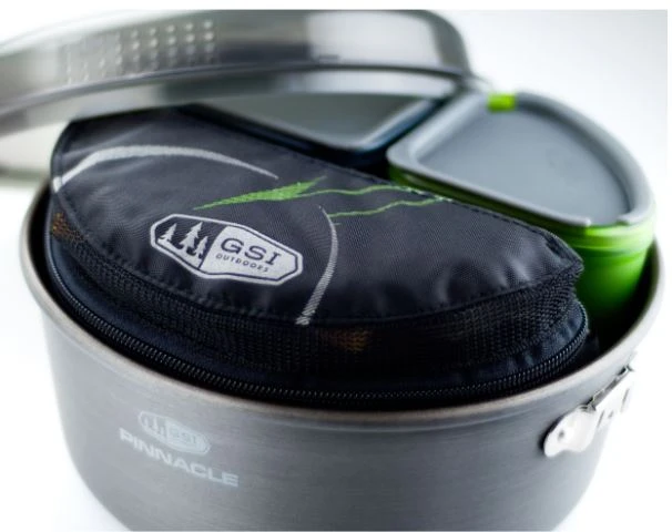 Integrated 12 piece kitchen set has every utensil for a gourmet backpacking trip neatly organized into a lightweight tote that keeps everything organized and nests within the nFORM Crossover System Cooksets.