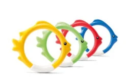 Have an exciting and competitive play in your pool this summer with the Intex Underwater fish rings. It’s as simple as the toss of a few rings in bright shades of green, orange, yellow and blue. The rings are made with soft flexible material for safety.