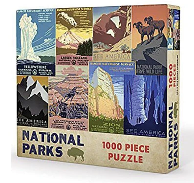 Puzzle includes images from Yellowstone, Lassen Volcanic Park, Arches, The Grand Canyon, Zion and more!