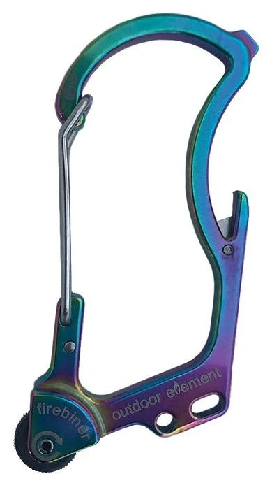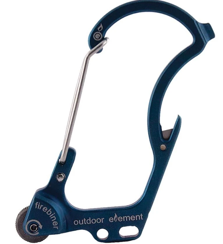 5 functions in 1 carabiner! Ingenious firewheel give you the spark to ignite a fire where ever and whenever! Other tools include safety utility blade, flathead screwdriver, a hang slot and the ever so obvious bottle opener. Lightweight in design and compact with a durable build.