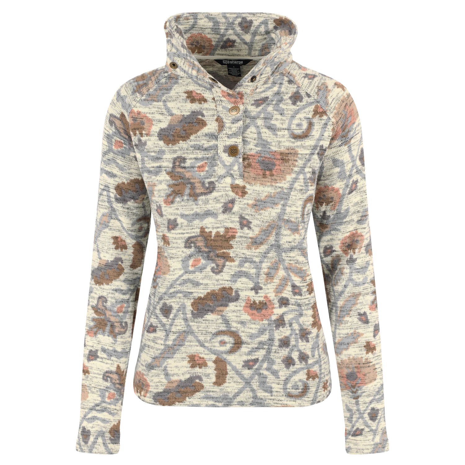 Featuring a striking Nepalese-inspired pattern, the Bhutan Pullover offers superior bulk-free warmth and a unique look. Perfect for seasonal travels and adventures, it’s composed from super soft polyester fabrics with quick-drying 300 wt brushed tricot for next-to-skin comfort and exceptional body temperature regulation. The off-shoulder seams and detailed raglan sleeves enhance mobility during active pursuits. The snap front placket allows for easy wear and quick ventilation when temperatures rise. Environmentally friendly, versatile, and comfortable, this pullover is finished with a handy kangaroo pocket for an additional layer of warmth and a handy spot for storing valuables on the go.