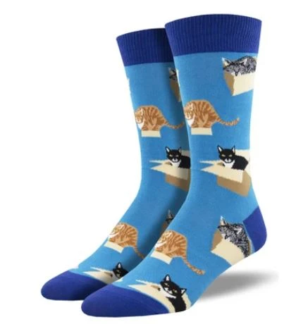 Do you buy your cat a new toy, only to have her be more entertained with the box it came in? Then these socks are for you! With adorable kitties enjoying a simple box, these fun socks are sure to be the purr-fect addition to your wardrobe.