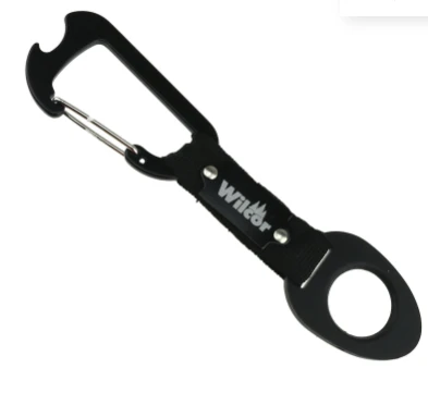 Assorted colors Carabiner clip includes bottle opener. Colors: black, blue & red.